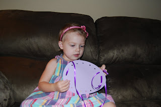 For the last activity, I gave Arin another lacing card. This time she picked the circle. I let her do this with no help this time. She didn't go around the circle in the right order. She was here and there with it, so in the future I will have to remind her how to go in the right order, but again, she enjoyed herself and sometimes that's what's most important.