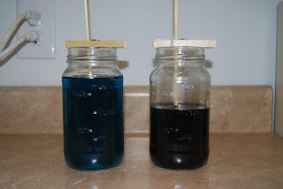 Next, we started our rock candy. Arin asked about this all day long. She can't believe that we are making our own lollipops. She kept asking me if it was done. I told her it'd be seven days. She counted to seven and said, "ok is it done?" I told her, no seven days, not seven seconds, so then she counted to eight and asked if she could eat it now. Silly little girl. We used this recipe. We used vanilla to flavor the rock candy.