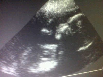 I was not given any regular pictures from the ultrasound. I tried to upload the video, but blogger will not accept it. These two pictures were taken from my phone during the ultrasound, so not the best quality.